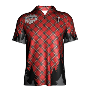 Nothing says Minnesota quite like Paul Bunyan and Babe the Blue Ox. Set incustomary lumberjack flannel, this jersey is sure to represent where you're from, or where you wish you were from. Polo collar with 1/4 zip and External Pocket.